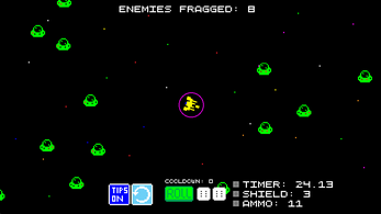 7. Game Over if your 'Timer' resource runs out, or if an enemy ship crashes into you when you have no shield.