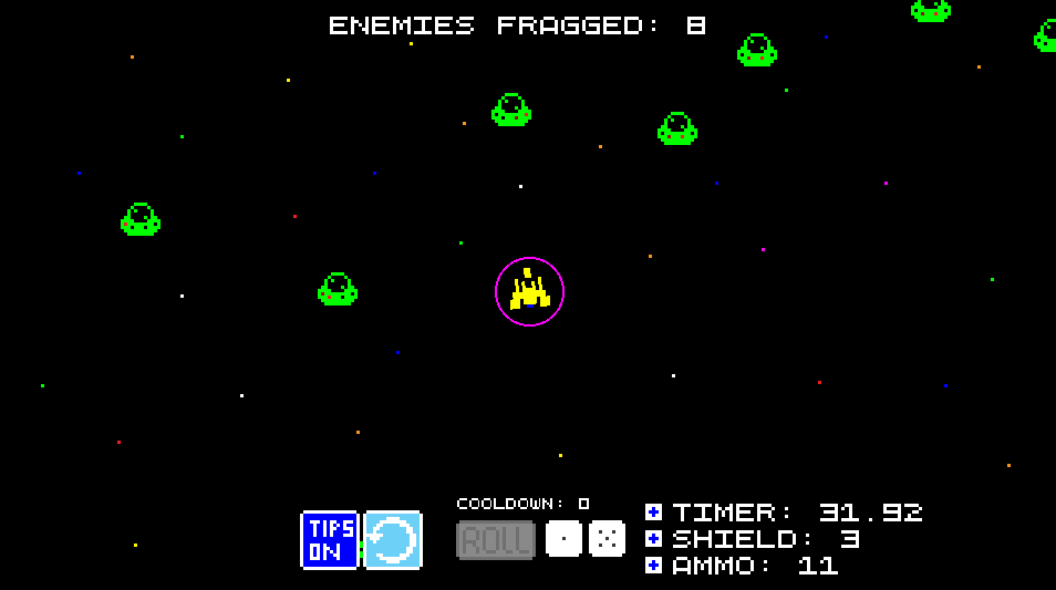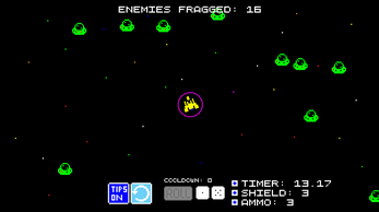 5. Your shield protects you from enemy ships, but no "Frag" points will be awarded if they crash into your shield. (1 shield point = 1 enemy ship crash protection).